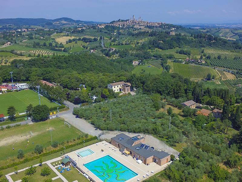 Hoog op een heuvel met uitzicht op de Val d'Elsa, in het hart van het platteland met olijfbomen en wijngaarden, is San Gimignano een buitengewoon goed voorbeeld van een, intact gebleven middeleeuwse stad. Ontstaan tussen de dertiende en veertiende eeuw. De Piazza dellaCisterna, als een zacht glooiende harmonieuze omgekeerde driehoek, vormt met het onregelmatige Piazza del Duomo, het hart van het religieuze en politieke leven van de stad. Rond deze twee belangrijkste pleinen zijn de meest interessante, historische gebouwen geconcentreerd. San Gimignano is vooral beroemd om zijn middeleeuwse torens die het landschap sterk karakteriseren. Van de oorspronkelijke 72 torens - één voor elke rijke familie in de stad - zijn er vandaag de dag nog maar zestien over. De oudste is de Rognosa toren is, terwijl de TorreGrossa met 54 meter de hoogste is.